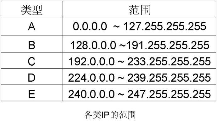 一個(gè)A類IP地址由1字節(jié)的網(wǎng)絡(luò)地址和3字節(jié)主機(jī)地址組成,網(wǎng)絡(luò)地址的最高位必須是“0”,地址范圍從1.0.0.0 到126.0.0.0。可用的A類網(wǎng)絡(luò)有126個(gè),每個(gè)網(wǎng)絡(luò)能容納1億多個(gè)主機(jī)。